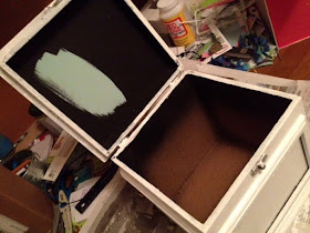 So i painted the outside a fresh new coat of white and the inside a fun turquoise-y blue.....